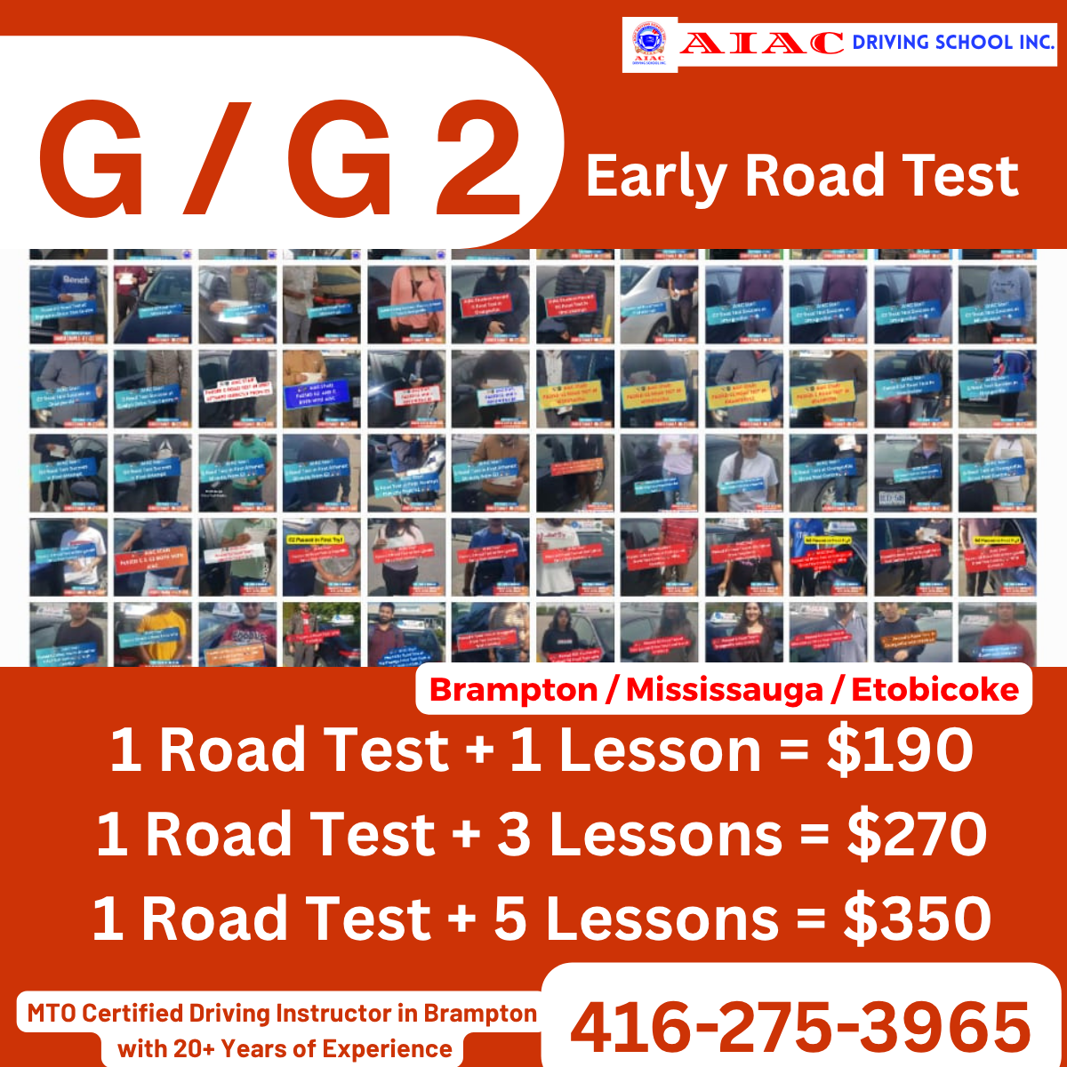 Contact us for G lessons, G2 lessons, G2 road test, G road test, g test, g2 test